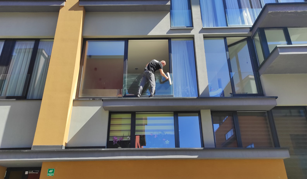 Čišćenje staklenih površina što podrazumjeva fasade, portale, prozore i sl. prilikom kojeg podrazumjevamo korištenje profesionalnih sredstava i alata za čišćenje. Profesionalni